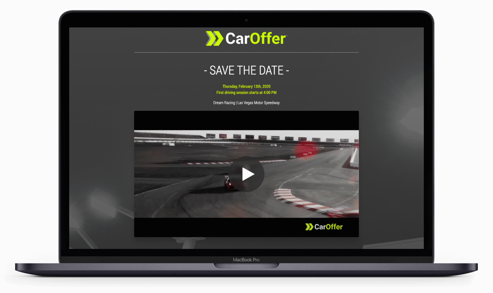 Qualifying dealers would be invited to race Ferraris and Lamborghinis in the most exclusive party at NADA. The first step of the process was a teaser video hosted on a landing page that would be promoted in email to gauge who would have the interest/availability to attend the event. Using footage provided by Dream Racing; I developed a video concept, set to music, and added the CarOffer brand and message. Dealers who met the requirements for an invitation were sent a personalized box containing their invitation. Working with our vendor partner, we decided on a soft touch finished box with black foil printed logos. I designed the contents of the box with luxury in mind. The box contained a message from the CarOffer CEO, insert cards outlining the event and the platform, a complimentary real leather coaster, and a metal gift card to act as their ticket. All materials were printed on high-end materials and had the fluorescent neon color CarOffer is known for. Attendees were extremely impressed with the presentation and the event resulting in 75% of attendees signing up for a demo.